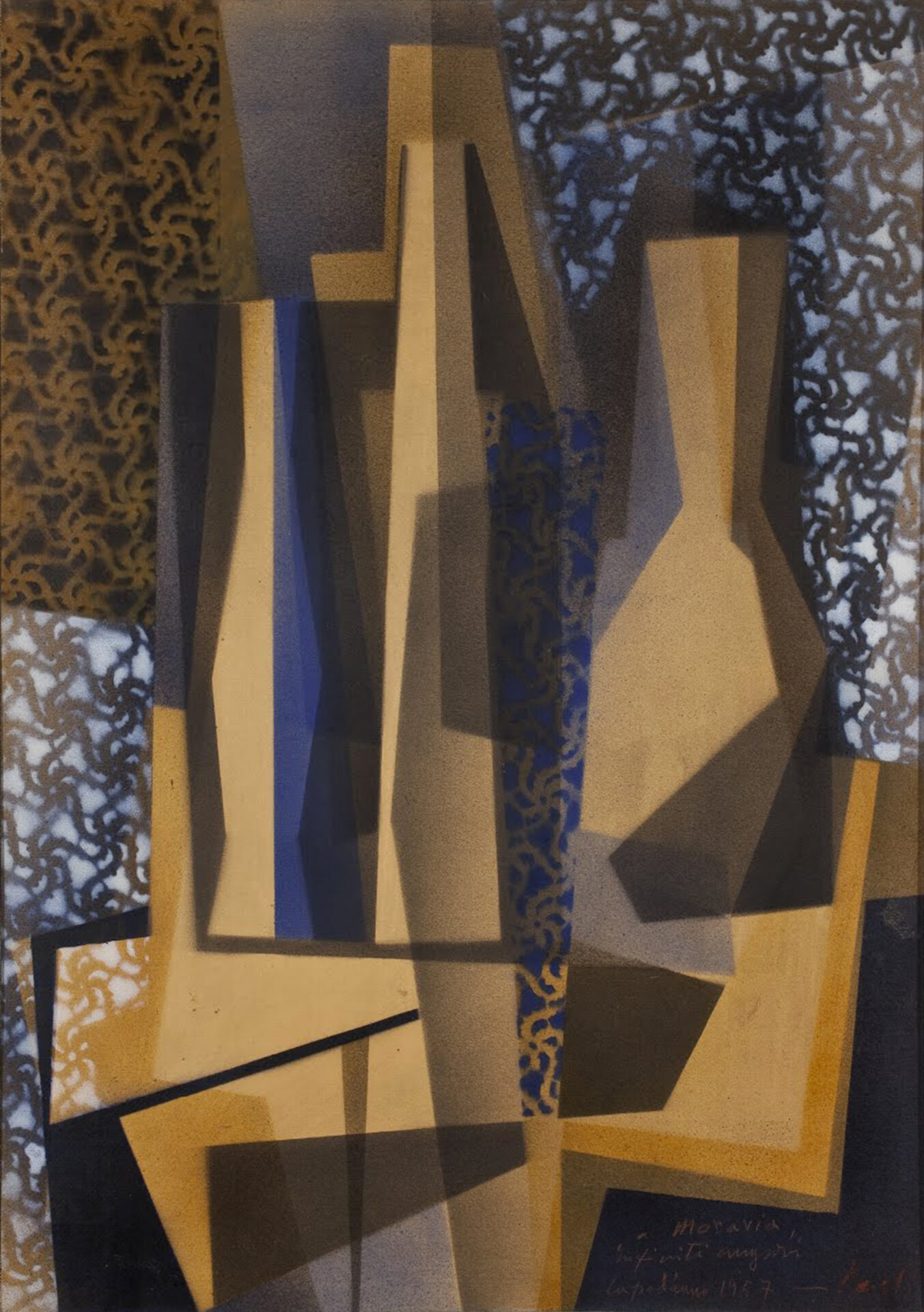 dedica autografa in basso a destra: “a Moravia / infiniti auguri / Capodanno 1957”